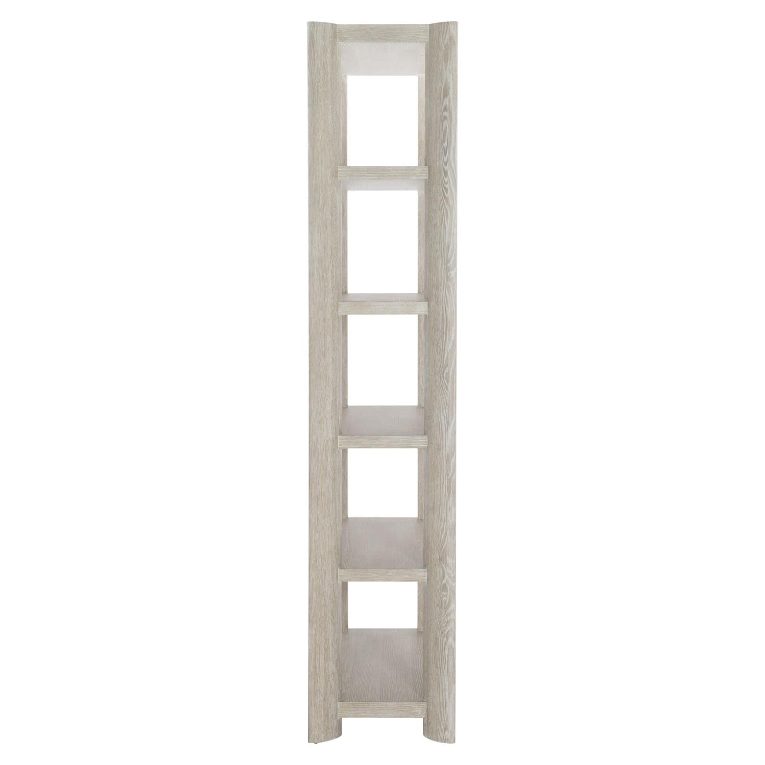 The Arlyn etagere is simple and elegant, designed with a perfectly balanced symmetry. Unique oval legs are set at an angle to support five shelves. The design is crafted of white oak in a Flaxen finish.