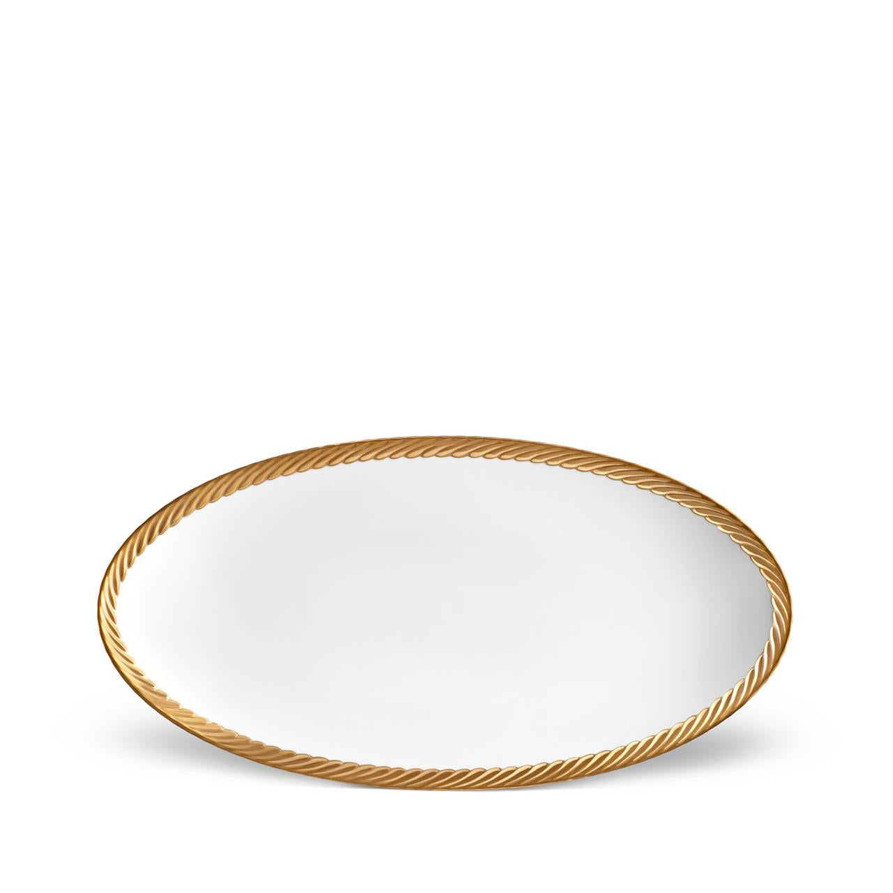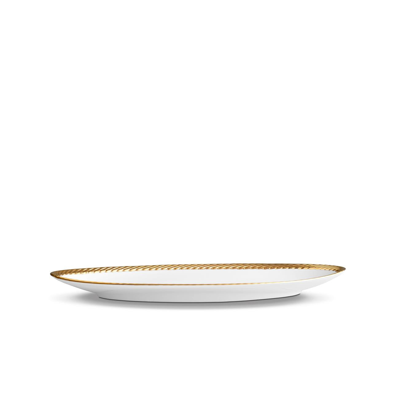 Patterned after old-world silk cords, each arched strand on the Corde collection is hand-painted to create a fully-glazed, modern dining pattern. Each piece is crafted in Limoges porcelain and available in white, 24-karat gold, or platinum.