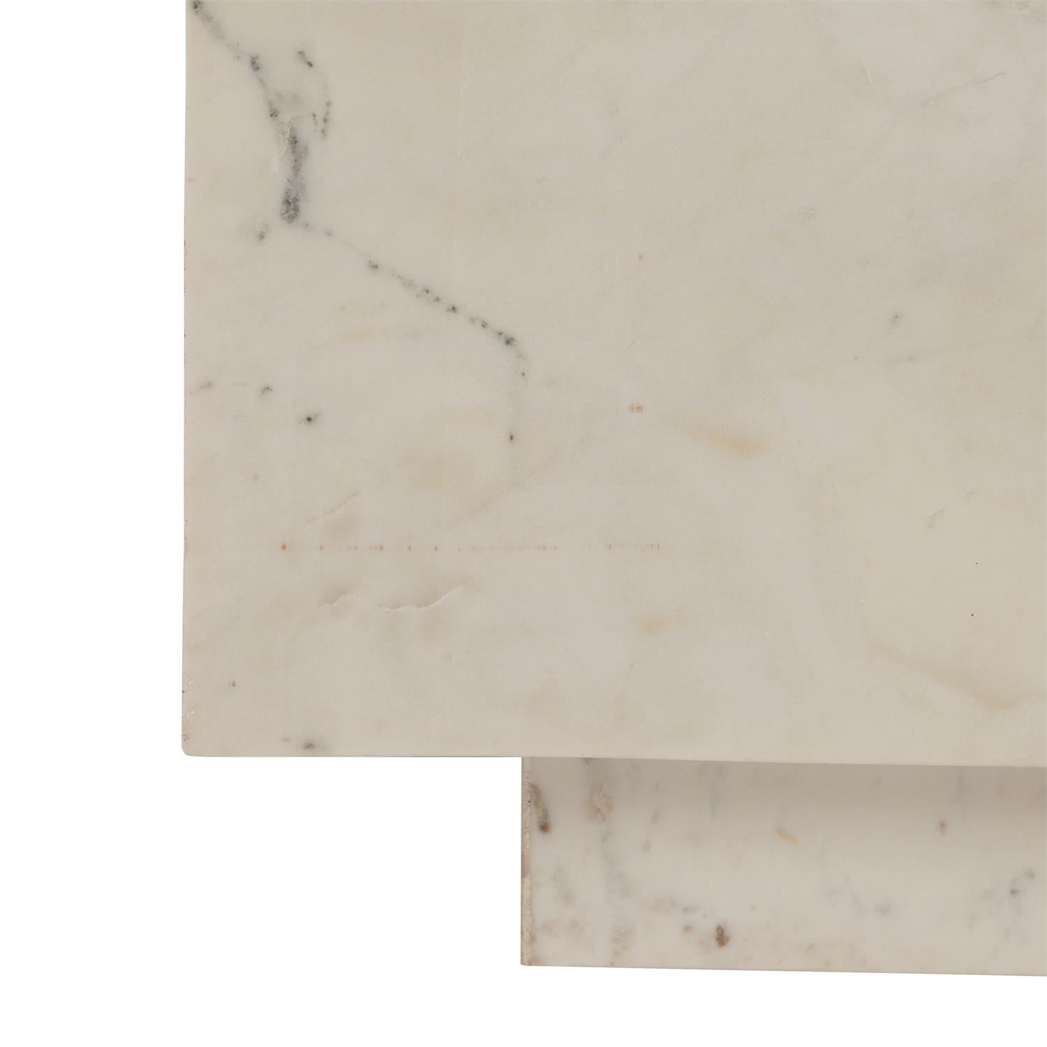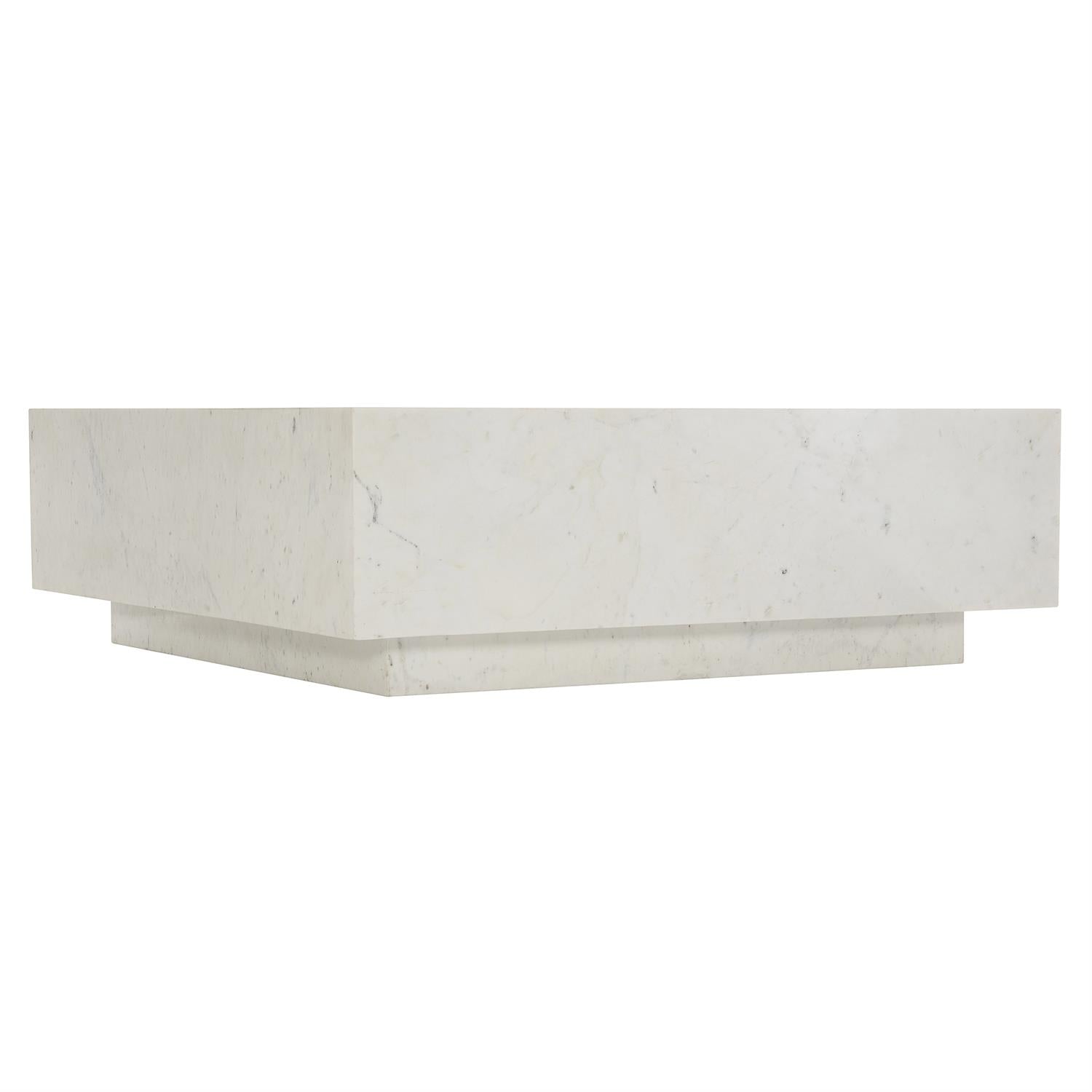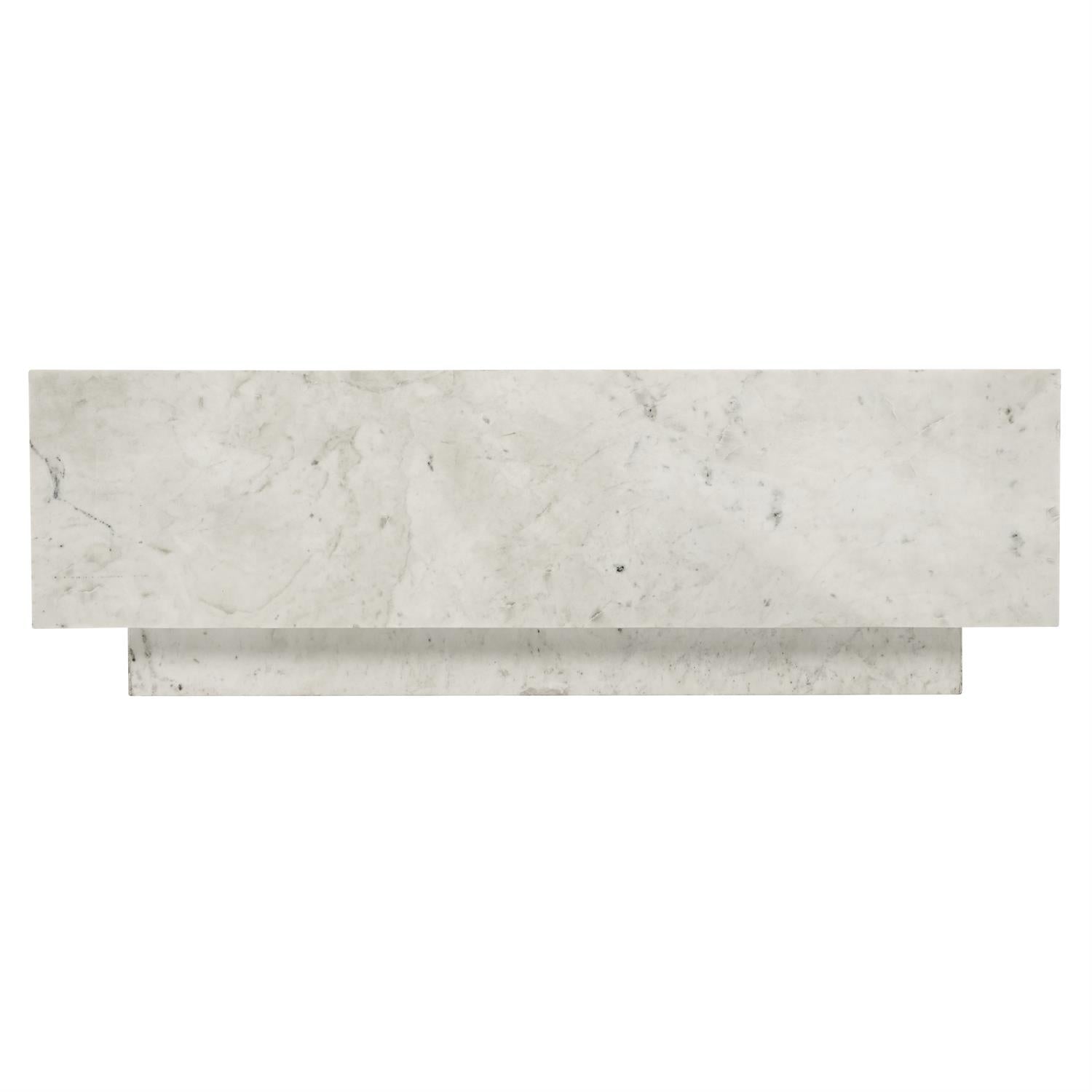 Crafted from marble imported from Banswara, India, the Donnelly cocktail table features a solid rectangular top resting on a plinth base. The white stone is luxurious and unique, thanks to its inherent fine quality, glossy sheen and subtle veining. The result is a table of timeless elegance.
