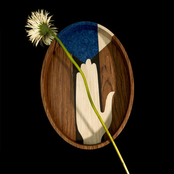 The Edgar Tray is a modernist take on the hand symbol. Handcrafted in our Portuguese Atelier with Inlaid exotic wood oaks using marquetry techniques, the Edgar Collection is suitable to adorn any room.