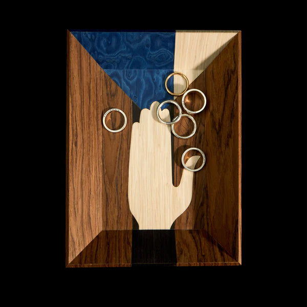 The Edgar Vide Poche is a modernist take on the hand symbol. Handcrafted in our Portuguese Atelier with Inlaid exotic wood oaks using marquetry techniques, the Edgar Collection is suitable to adorn any room.