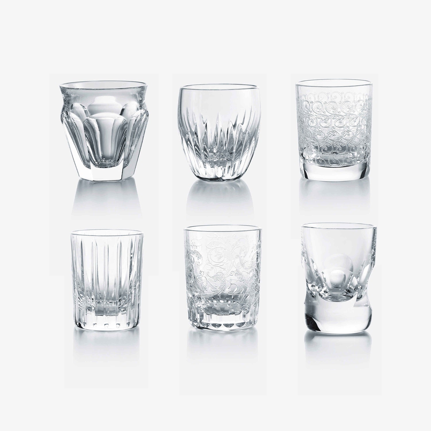 Holding delicious entrées to splendidly dress every dinner table or as an after dinner drink glass to end a lovely evening, the Minis are the ideal ornaments to exceptional moments in life. Miniature versions of six of the House's emblematic glasses, “les Minis” will add a new dimension to your receptions with brilliance and true style. This set contains 6 mini Tumblers: a mini Harmonie, mini Rohan, mini Parma, mini Orio, mini Talleyrand and a mini Massena.