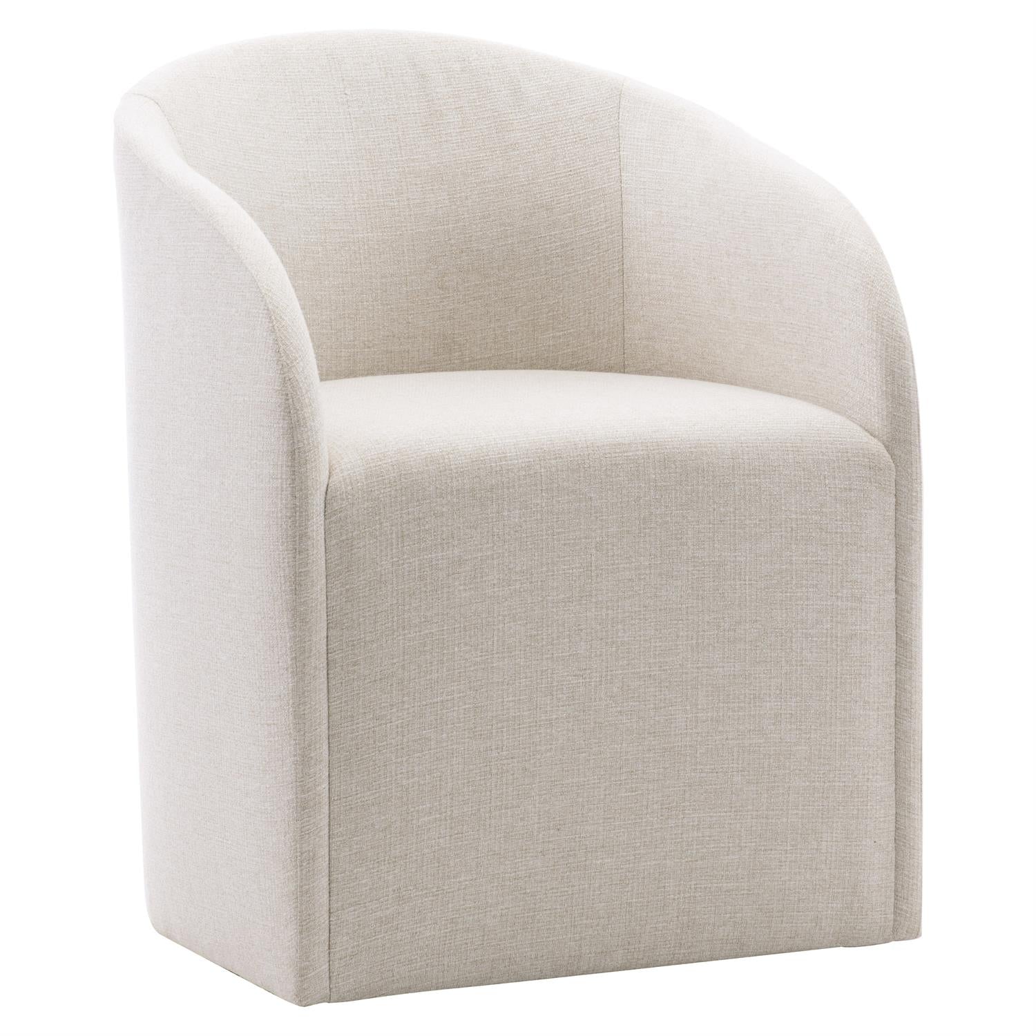 The minimalist design of this elegant dining chair thrives on the beauty of its simple form and soothing curves.Cool modern minimalism informs the simple, elegant shape of the Finch dining chair. Fully upholstered in textural fabric, it features a curved back and gently sloping arms. Neither too formal nor too casual, this sophisticated chair reflects lifestyle and taste.