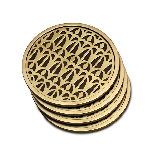 The artisans of Venice inspire us with carefully guarded techniques handed down from the ancient world, one generation of artisans to the next. Meticulously handcrafted in antiqued brass, our Fortuny venise coasters are rich in texture and global in design.