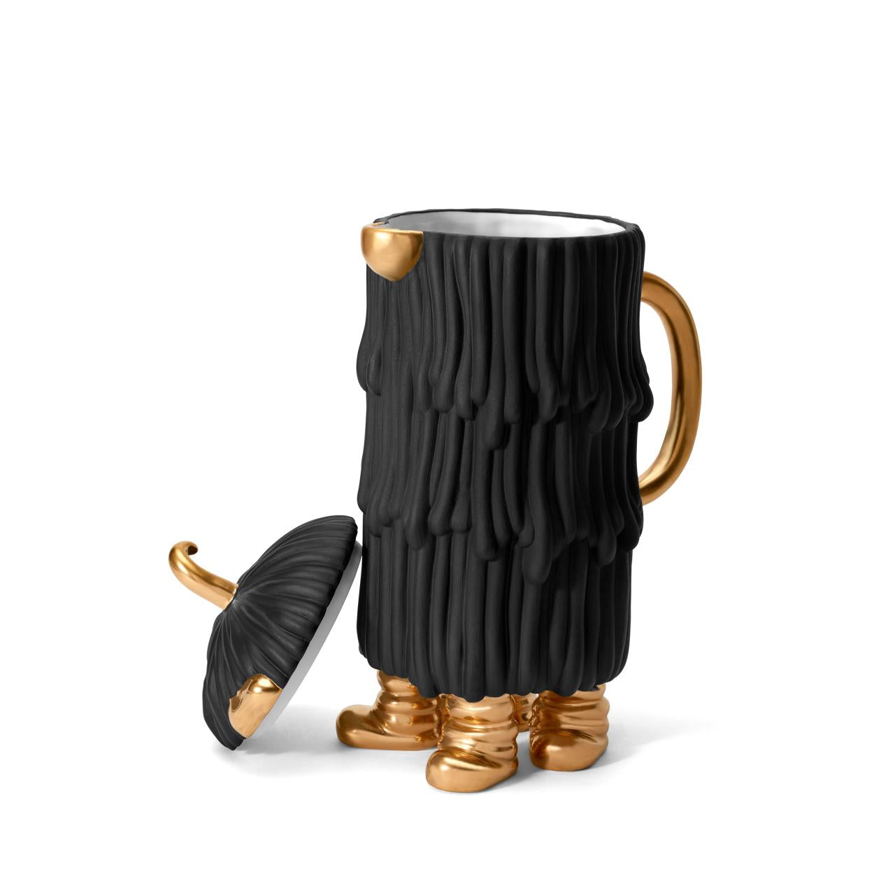 The L’OBJET Haas Brothers collection is a meeting of imaginative minds and skilled hands. Inspired by the otherworldly landscape of Joshua Tree, Los Angeles-based artists Simon and Nikolai Haas worked in close collaboration with the master craftsmen at L’OBJET to create a collection that spans tableware, home décor, textiles and fragrance. Together, they have brought to life a family of characterful creatures with the highest quality of finish and function. These are objects to be cherished. In using them, everyday moments become memorable; the ordinary becomes extraordinary. This iconic monster creates a fantasy-filled ceremony for serving beverages. Available in black or white porcelain hand-carved into pillowey, undulating waves of fur and outfitted with opulent 24K gold lips and feet.