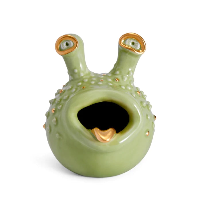 Return to the sumptuous fantasy world with the second chapter of L'OBJET Haas Brothers, where new creatures await. This hand-crafted porcelain ashtray is glazed in earthy, soothing Mojave Matcha green and delicately accented with 24K gold.