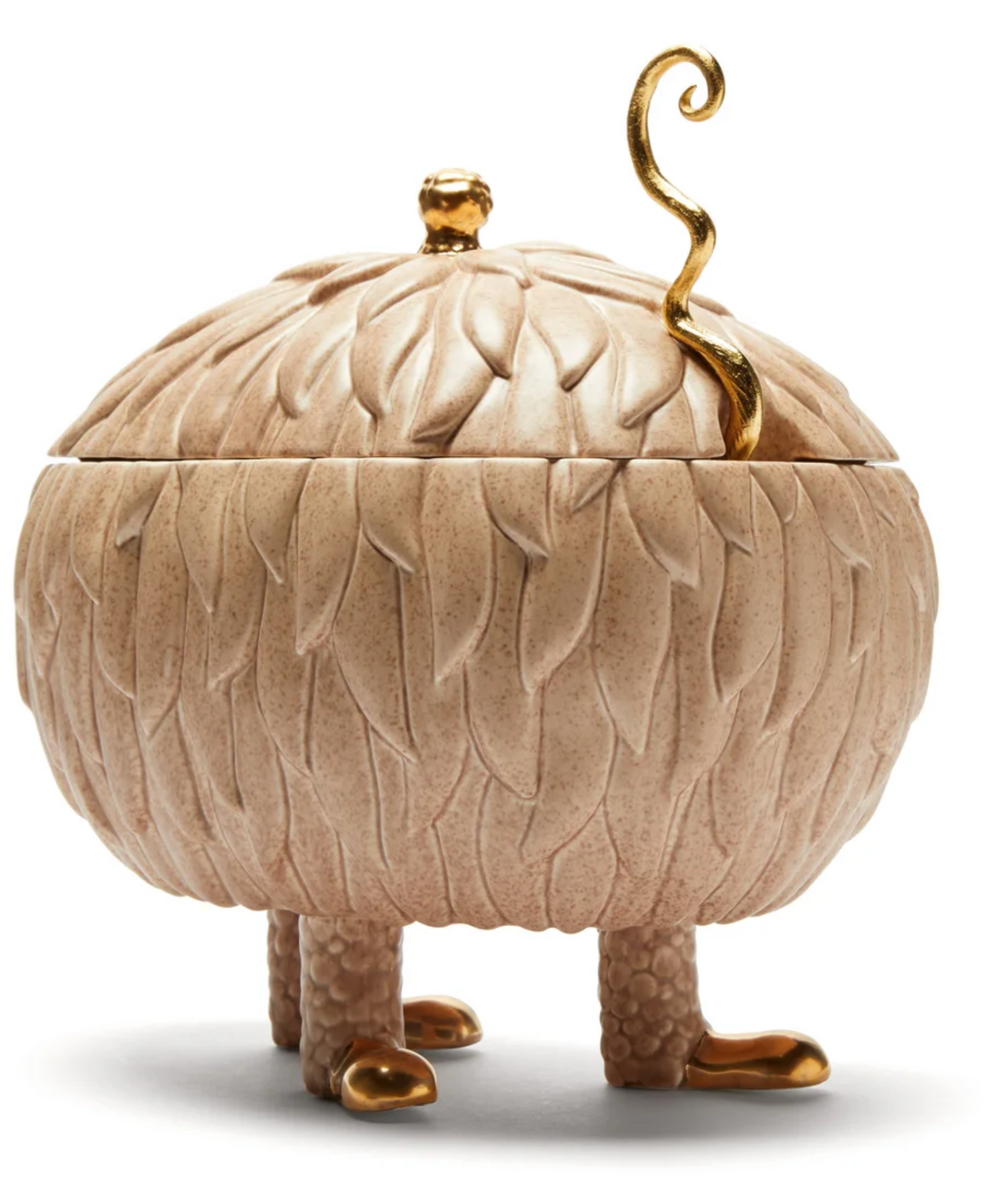 The L’OBJET Haas Brothers collection is a meeting of imaginative minds and skilled hands. Inspired by the otherworldly landscape of Joshua Tree, Los Angeles-based artists Simon and Nikolai Haas worked in close collaboration with the master craftsmen at L’OBJET to create a collection that spans tableware, home décor, textiles and fragrance. Together, they have brought to life a family of characterful creatures with the highest quality of finish and function. These are objects to be cherished. In using them, everyday moments become memorable; the ordinary becomes extraordinary. The Haas Salad Monster Serving Bowl and Soup Monster Tureen create a fantasy-filled serving ceremony. Generously sized and hand-crafted from earthenware glazed in desert sunset hues and appointed with 24K gold plated serveware pieces. The organic forms of these creatures intimately nest against one another, as in a herd.
