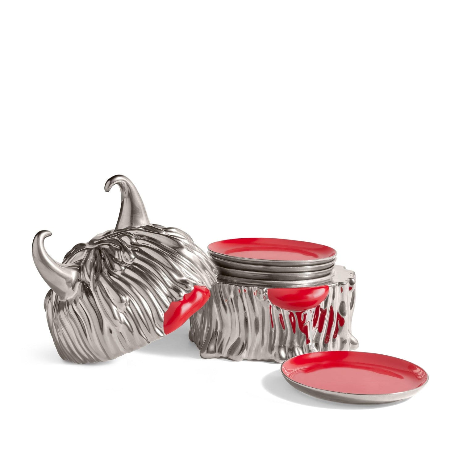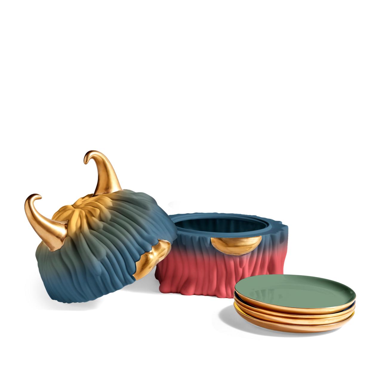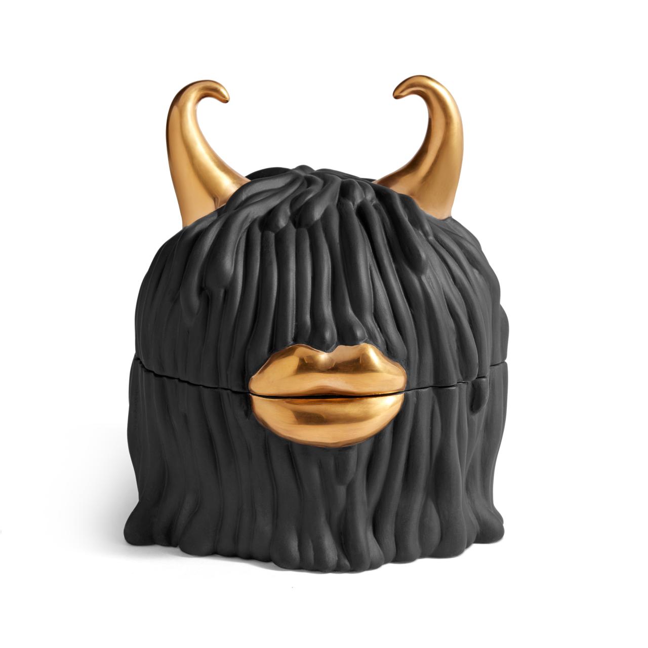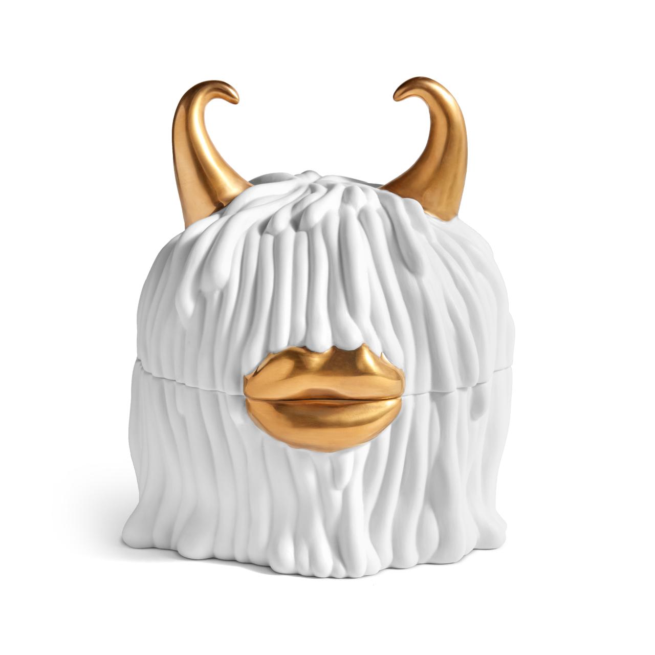 The L’OBJET Haas Brothers collection is a meeting of imaginative minds and skilled hands. Inspired by the otherworldly landscape of Joshua Tree, Los Angeles-based artists Simon and Nikolai Haas worked in close collaboration with the master craftsmen at L’OBJET to create a collection that spans tableware, home décor, textiles and fragrance. Together, they have brought to life a family of characterful creatures with the highest quality of finish and function. These are objects to be cherished. In using them, everyday moments become memorable; the ordinary becomes extraordinary. Lynda is an exquisitely decorated yet secretive creature, who likes to hide treasure in her belly. She rewards anyone brave enough to come close to discover the surprise of what she keeps within. Designed to create an unforgettable serving ceremony. Available in black or white porcelain. Also available in 24K gold + pink - limited edition of 500.