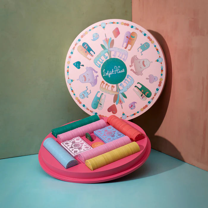 Inspired by rediscovering the joy of being with family and friends, L'OBJET Haas Brothers games facilitate revelry that goes late into the night. Lacquered wood poker set includes original Haas-illustrated packs of playing cards.