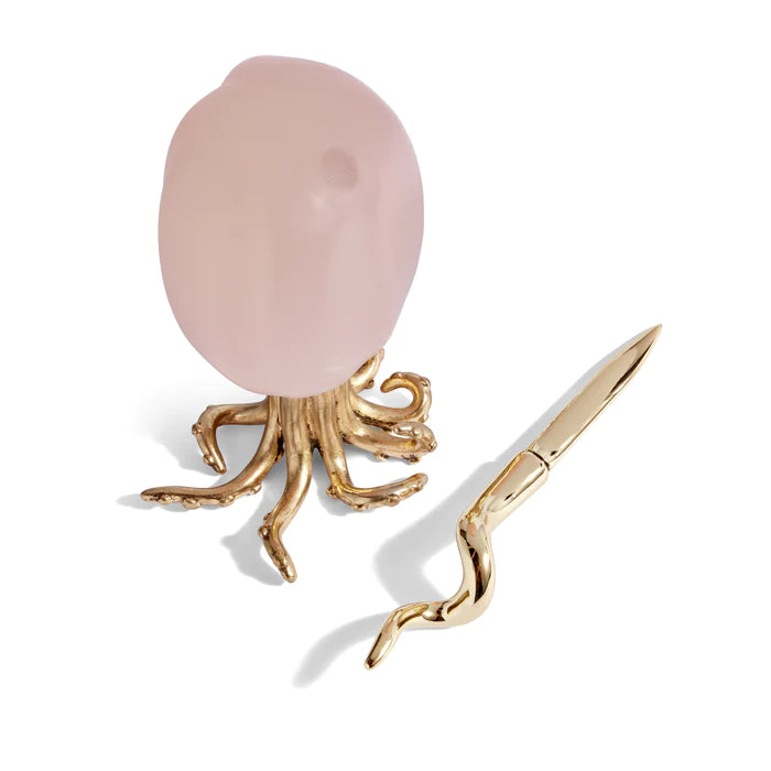From the Haas Brothers desktop menagerie - an otherworldly pink resin and brass letter opener. These are objects to be cherished. In using them, everyday moments become memorable; the ordinary becomes extraordinary.