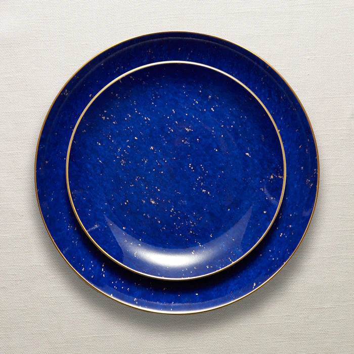 Lapis celebrates the mesmerizing skies above the Mediterranean, an azure of incredible depth in variation and tone. Charger plate made of porcelain with hand-gilded 24K gold accents.