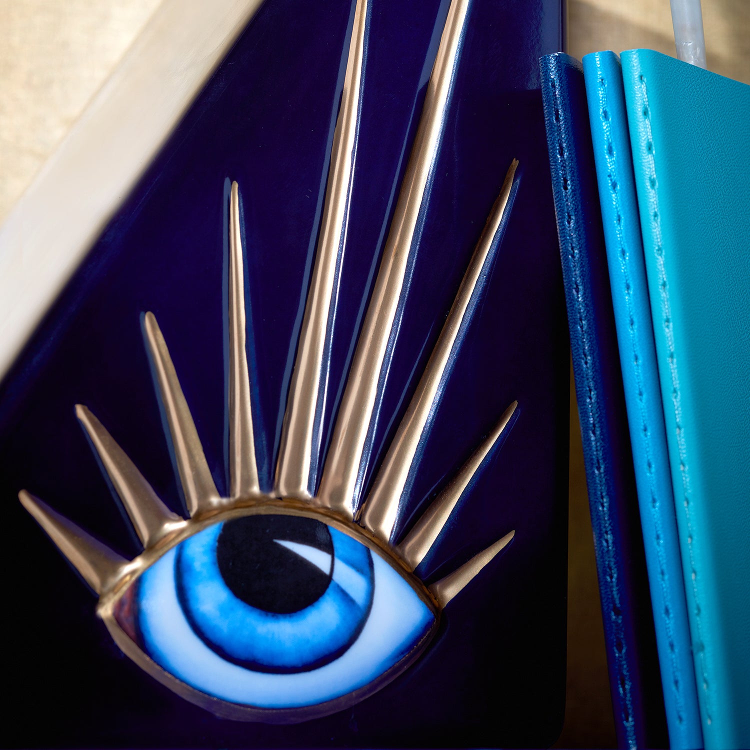 A surrealistic “talisman” of good luck and a traditional symbol of protection, the eye serves as a constant reminder to be aware, to dispel negative energy, and to seek beauty in the everyday. The eye is also a point of connection between two souls. L’Objet + Lito is a celebration of that connection, between two creators, inviting you to see design in a whole new light. Whimsical and surreal decorative objects are handcrafted in porcelain with 24-karat gold plating and inlaid with resin details.