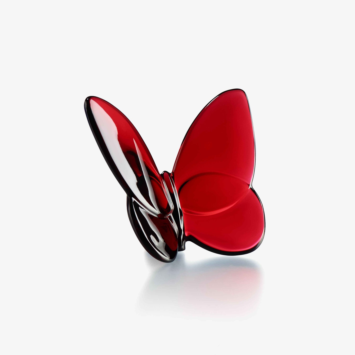 The poetic contours highlight Baccarat’s signature craftsmanship. Placed anywhere in the home, the Baccarat Lucky Butterfly elicits a sense of momentum and graceful élan. Designed for Baccarat by Evelyne Julienne, this fascinating creature comes in a wide variety of available colors including: blue, peony, ruby red, amber, turquoise blue crystal, black, gold, purple, blue scarab and clear iridescent crystal (with tinges of green, yellow and blue).