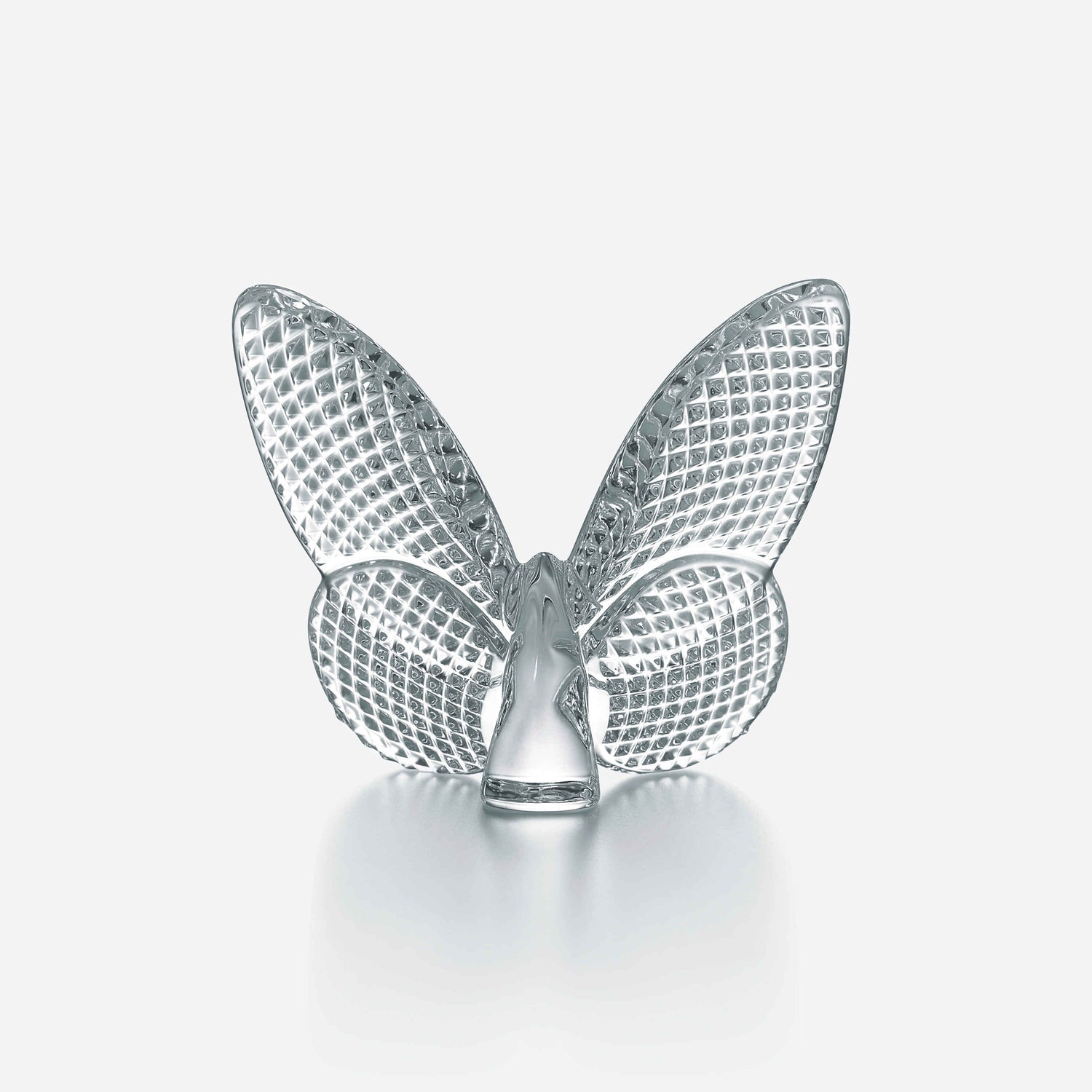 Poised to flutter off, the Baccarat crystal butterfly glints vibrantly with bright color. The wings fan out grandly, echoing the shape characteristic of the Amazonian breed. The poetic contours highlight Baccarat’s signature craftsmanship. Placed anywhere in the home, the Baccarat Lucky Butterfly elicits a sense of momentum and graceful élan. Designed for Baccarat by Evelyne Julienne, this fascinating creature comes in a wide variety of available colors including: parma violet, blue, peony, moss green, purple, ruby red, amber, turquoise blue crystal, Clear and Clear iridescent crystal (with tinges of green, yellow and blue).