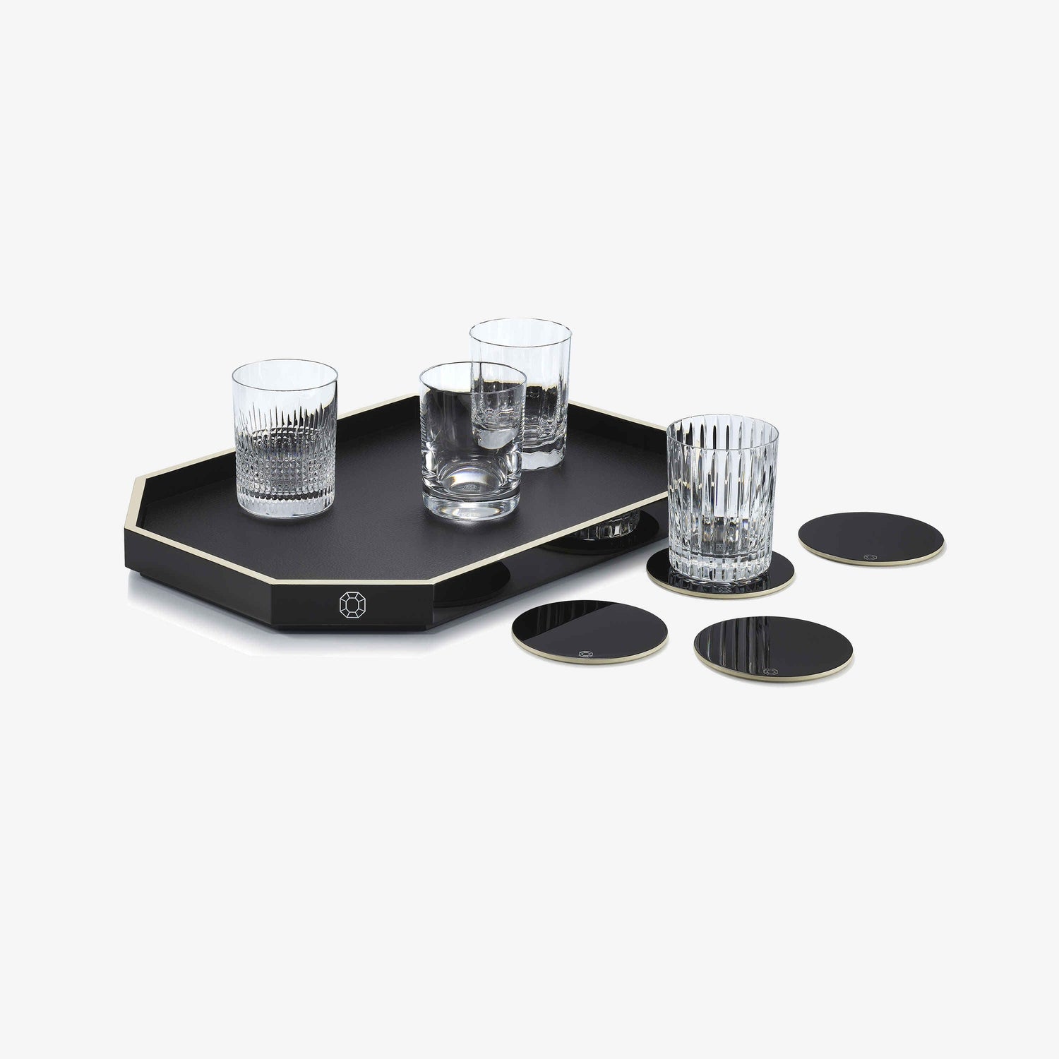 The Octogone tray is a beautiful, lacquered piece, available in three sizes. Inspired by the red octagonal tassel, the iconic signature of Baccarat, a series of refined lacquered accessories comprise these new pieces, which come to enlarge the Octogone collection. The tray, in the shape of an octagon, is meticulously handcrafted using ancestral artistry. Its brilliant surface captures the light and highlights Baccarat’s crystal creations. Each tray comes with a removable leather insert, adding an elegant contrast of materials and textures. The Octogone tray exists in a variety of shades, enriched over the seasons and matched with the coaster from the same collection.