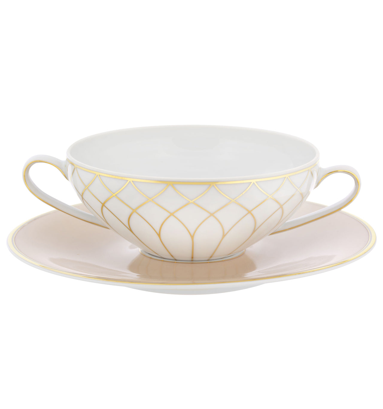 Consomme Cup & Saucer Terrace. Richly decorated in gold, with hand-painted details.